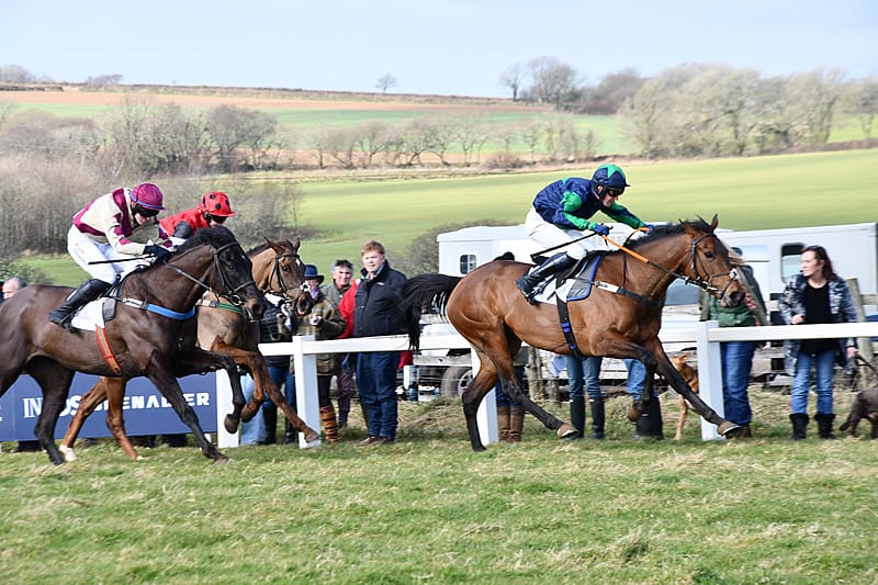 In Excell and Gingerbred finishing second and third to Valereum Bridge at Great Trethew * Photo – Carl Evans