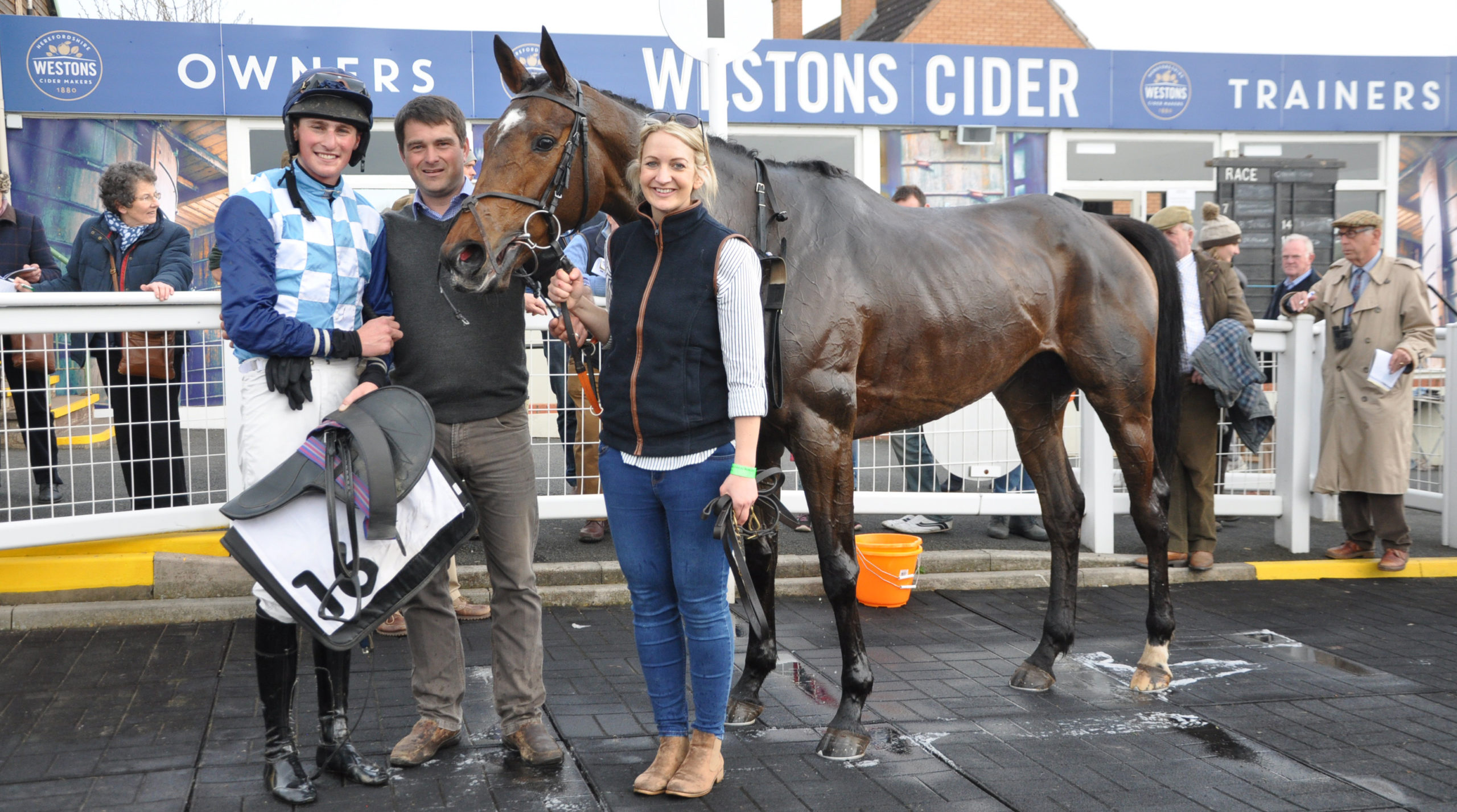 Spark To A Flame, winning rider Zac Baker, trainer Robert Luke and his wife Lucy