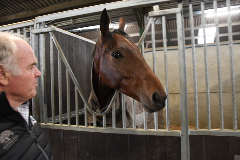 Other proven pointers who paraded included Mammoth (top picture with groom Ellie Callwood), Bawnmore, General Arrow, Loughan, Master Templar, Dundrum Wood and Precious Bounty, and the yard has gained a number of new recruits with form under Rules. There is also a host of young horses aged three and four, many of them broken in or schooled by Jack. He described an unnamed son of Pether’s Moon as: “One of our leading lights among the four-year-olds. He might go to Hexham [on November 27],” while of a three-year-old by Jack Hobbs out of the good racemare Mickie, he said: “His half-brother sold to Paul Nicholls for €120,000 and this one is very relaxed and has a great attitude.”