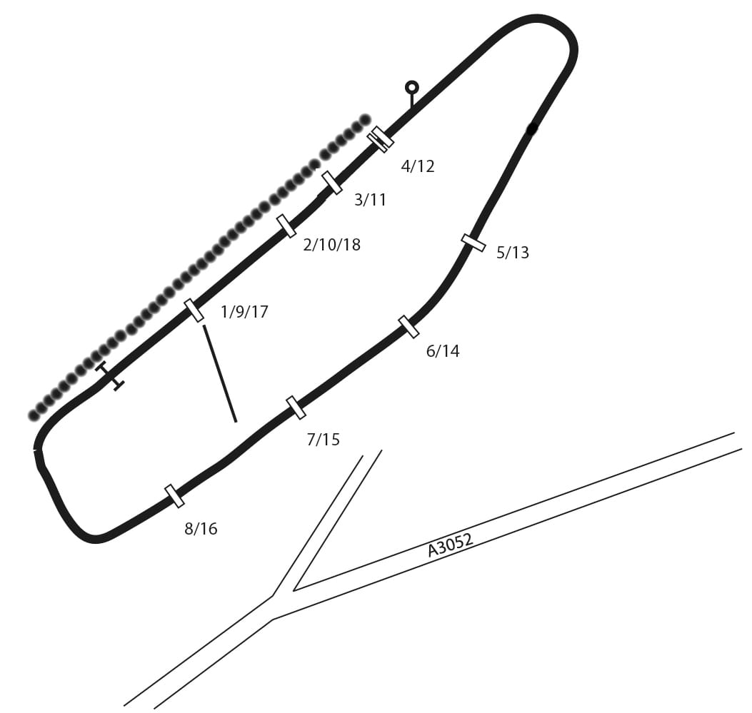 Flat and sharp, but easy course favouring speed merchants (races often run flat out all the way); fences stiff and up to height with the first 3 fences being fairly formidable.