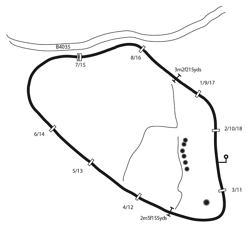 Flat right-handed course. Galloping track with wide home straight. Well-made portable fences. Watering available. Run-in 110yds.