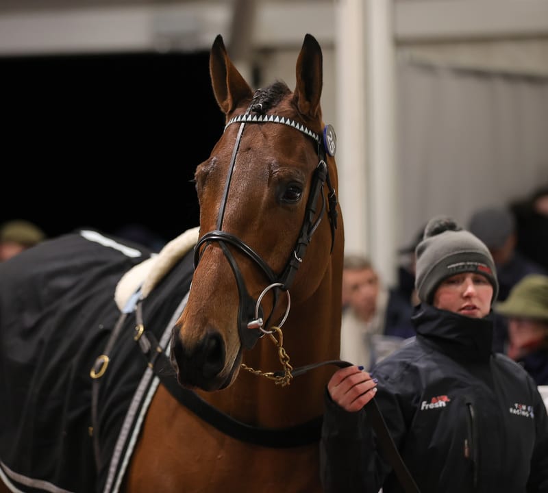 Panjandrum, led up by trainer Gina Andrews, sells for £95,000 at Tattersalls Cheltenham’s January Sale (Photo: Debbie Burt/tattersalls.com)