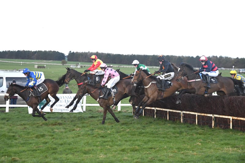 Crawter (red, yellow colours under Callum Pritchard) on his way to fifth place in a maiden race at Larkhill in March last year (Ce)