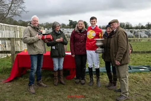 Protect the Future, ridden by Charlie Marshall and trained by Hannah Marshall, owned by The Chamings Family Partnership, took up the running after the tenth and won easily by 6 lengths. Double for the Marshall team both winners were sourced by David Phelan. Diamond Appeal trained by Bea Coward ridden by Martin Mcintyre was 2nd. Callmedusty 2/1F trained by Rob Varnham for the Gunshot Paddocks Racing Club, ridden by Seb Mead was 3rd 4 lengths behind.